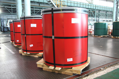 ■在连续机组上以冷轧带钢,镀锌带钢(电镀锌和热镀锌)为基板,经过表面预处理(脱脂和化学处理),用辊涂的方法,涂上一层或多层液态涂料,经过烘烤和冷却所得的板材即为涂层钢板。■ 国内有背(底)漆和面(正面)漆涂层,一般国内是背漆一层,面漆两层,国外业务面漆背漆均是两层。由于涂层可以有各种不同的颜色,习惯上把涂层钢板叫做彩色涂层钢板。